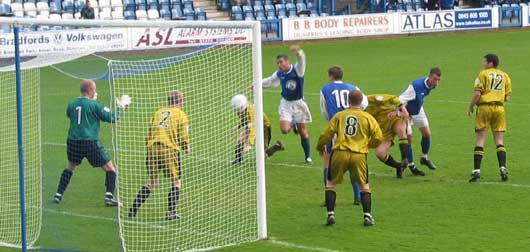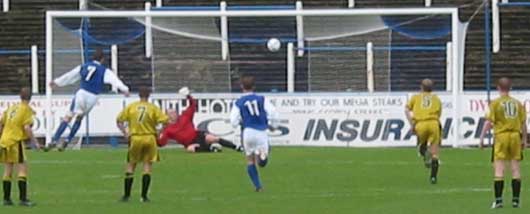 The closing minutes saw a good effort by the home side as a Derek Allan header from a corner was cleared off the line by a defender and then the clearance was driven in by Eric Paton only to be cleared by the same defender who had fallen to the ground and probably didn't know much about what had happened.