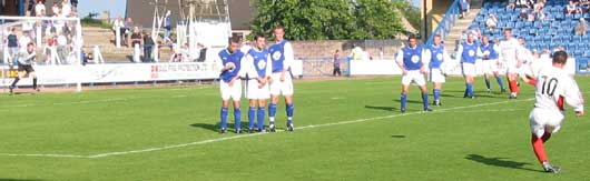 The next Queens move of any note was produced by Jon Crawford in the twenty fourth minute as he beat his man and headed for the bye-line, his cross though was taken well by the Caley 'keeper. Again though from the end of this move Caley broke upfield and from another simple text book move scored their second from a headed Dennis Wyness effort as the Dumfries defence looked on motionless.