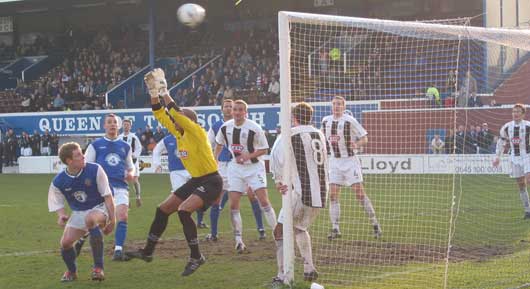 Queens at this stage were not looking at all a shadow of the side that had held Inverness in midweek, although this was probably due more to the hard work of the Saints. Our first opportunity didn't come until twenty five minutes into the match and it took a soft free kick following a tackle on Bowser some thirty yards out for us to threaten. Unfortunately the effort, taken by McColligan was missed by intended target Derek Allan and went wide for a goal-kick.