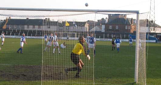 Disaster struck shortly after though as a free kick on the right of the box went through the defence and was fired back in again from the left, the result this time was a scramble in the six yard box and somehow the ball ended up in the back of the home goal to make the score 2-0 to the Saints.