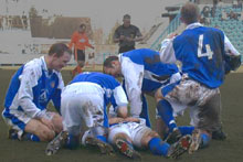 The "Cleyholers" must have fancied their chances of revenge on Tuesday but found a Queens side in stunning form. The "Doonhamers" completely dominated the first half, and took the lead courtesy of an O'Neill header, but somehow found themselves level thanks to Wingate's equaliser on 42 minutes. However, there seemed to be a genuine confidence in the side that night and that man McAlpine, who seems to like playing Stranraer, struck a glorious winner from outside the box just after the hour mark. The strike took a slight deflection but that shouldn't detract from its quality. Queens fans made up well over half of the crowd and the players were visibly encouraged by the support they received on the night, a fact later acknowledged by both Connolly and Andy Aitken. For me, this was the night that turned the season. Having had a bit of a let off on the Saturday, the team came out and proved their determination to win the League. It was the night that we, the fans, realised we finally had a team good enough to do it and the night that the team realised just how much support was behind them. With our two biggest rivals, Clydebank and Alloa, drawing with one another, we not only retained top spot for the first time this season, but we extended the lead to three points (though Alloa, four points behind in third, had a game in hand). Before the end of the week, Queens controversially captured the signature of Sean O'Connor from Dundee United for what manager Connolly would later describe as a nominal fee. Big Sean had been on loan to Morton all season and had impressed in the games against us but, after United recalled him due to an injury crisis, he signed for us a week later. Morton, were far from impressed and complained to the League. It's hard not to have some sympathy for them as their best player was snatched away against their wishes but ultimately, if you live by the sword you may also die by it. It's the price you pay for bringing players in on loan. We lost Feroz early in the season under similar circumstances. |