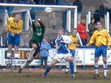 | Saturday's match against Cowdenbeath saw another 2,000 plus crowd show up and O'Connor made his debut as a straight replacement for Lyle, who had picked up a knock at Stranraer. Two goals from the revitalised Weatherson were enough to clinch the points despite a late consolation from Brown. John O'Neill suffered a hamstring tweak in the act of setting up the opening goal and was forced to miss the next two matches. With Alloa and Clydebank drawing with one another for the second time in a week, the lead was extended again. |