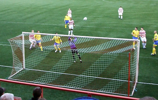 Queens missed a great chance on 78 minutes as Elebert was caught out by the bounce of the ball and a good cross found Harris with an open goal at the back post, albeit from a tight angle. However, he either got his shot all wrong or looked for a cross because the ball somehow ended up in the arms of Cerny who was already lying on the ground. Accies then replaced Offiong with Mark Gilhaney before Steve Tosh picked up a booking for dissent and was then replaced by Brian Gilmour on 84 minutes to complete the changes. With five minutes to go Cerny made a wonderful save low from David Elebert's back header from a deep free kick. However, in the remaining time we failed to force a save out of him ourselves. So it's back to Palmerston on Saturday and a crucial fixture against Clyde.