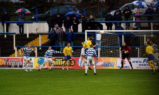 With ten minutes to go John Stewart broke forward to work an opening but, having done the hard bit, he sliced his shot wide. It was end to end stuff and Wake missed a fine opening at the other end seconds later. Stewart forced a save from McGurn from 18 yards but his moment of glory wasn't delayed long. John O'Neill sent Ryan McCann cantering down the right side and he evaded Greacen before firing in a shot that McGurn could only parry. There was John Stewart to volley the rebound home from 20 yards to double the lead with four minutes remaining..