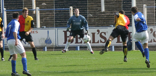 It wasn't long before the lead was doubled though as English again sent a ball across the area, this time it was pushed out as far as Eric Paton on the edge of the box and with a spectacular left foot volley the right back sent the ball crashing into the bottom corner giving 'keeper Arthur no chance.