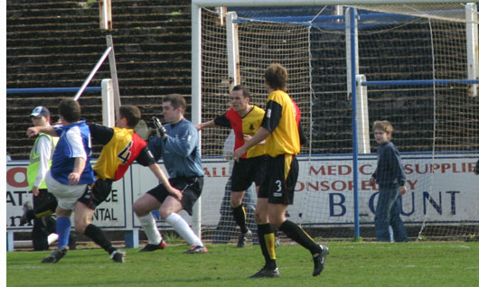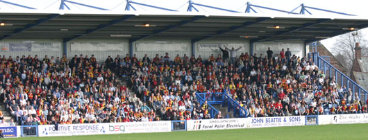 A very healthy support from Glasgow came down hoping to see their favourites make up some ground on the hosts and hopefully make up some ground on the teams just above them, however it could not have been any worse a day for the Maryhill fans as they were comfortably defeated by Queens and all of their nearest relegation 'scrappers' won their matches leaving the 2003/04 SPL side facing an SFL Division 2 season in 2005/06. |