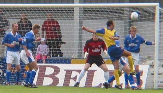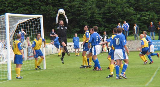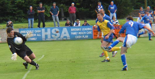Bowser very nearly put his name on the scoresheet as he took the opportunity to lob the McCondichie in the Stranraer goal, following good work by Derek Lyle in winning a throw in on the left hand side, the Stranraer 'keeper though made an impressive save to tip the net-bound shot over the bar.