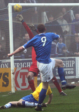 ![]() Jamie drills it home through Hay's legs ![]() He liked that one! |