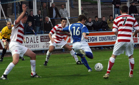 Almost before the joy had died down there was a second reason to celebrate as the outstanding Brian Gilmour made his way into the box, with a step to the left then a step to the right the wing man made enough space to see the goals. His strike appeared to hit the post and come back out before hitting Halliwell on the shoulder and rebounding into the net for the second and what was to prove the decisive goal.