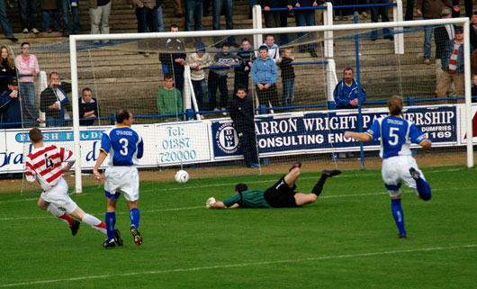 Bingo, Halliwell and McLaughlin all help the ball into the net - From David Gow on the terracing |