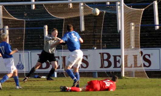 Queens continued to press however and it was no surprise when the pressure turned into a goal as a free kick taken by Stuart Lovell following a foul on Paul Burns allowed Michael Mullen to steer a header towards the far post, with Jarvie struggling to cover the ground John O'Neill popped up and attempted to slot the ball home, however Jarvie did just enough to deflect the ball back into the six yard box where Andy Thomson was more than happy to accept the chance to smash the ball into the back of the net for the winner.