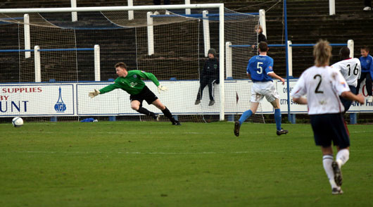 ![]() Scot watches as Ciani's shot slides past |