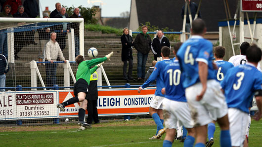 Queens were looking confident as County were unable to trouble the goal of Colin Scott. Ian McCall made a similar swap to last week as he brought on Stephen Swift to replace Warren Moon who again had a great game distributing the ball from the centre of the park. Swift went wide right and Eric Paton took up the spot vacated by Warren Moon.