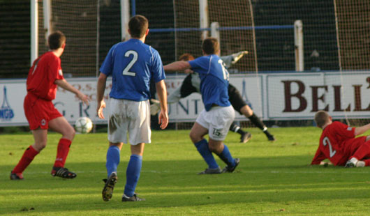 Brian McLaughlin was to last a mere 8 minutes however as a challenge with a Clyde player on the right hand side saw McLaughlins arm end up underneath the opposition player as the two came crashing to the ground. The result for McLaughlin being a visit to hospital with a suspected dislocated collar bone. This change saw David McNiven brought on for yet another early start form the subs bench as he took up the striker mantle given up by John O'Neill as O'Neill retreated into midfield. |