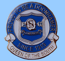 The new 'Proud to be a Doonhamer' badge is still available from the club shop and the usual outlets priced £3.00. As with the previous new kit badge, of which only the last few remain, this is a strictly limited edition. Both badges are pictured below. Actual size of strip badge 20mm x 25mm and of round badge 25mm dia max.