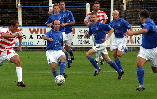 Any hopes though that this was the beginning of a new dawn were soon dashed as we crashed at home again the following weekend. This time Hamilton Academical were the visitors who came, saw and conquered, leaving with a 2-1 victory. Graeme Jones scored early and Scott Tunbridge bagged a late winner. In between times John O'Neill's penalty kick had become only our second league goal of the season. Surely October would be better? ![]() McLaughlin sets McNiven off on a break Ewan Lithgow |