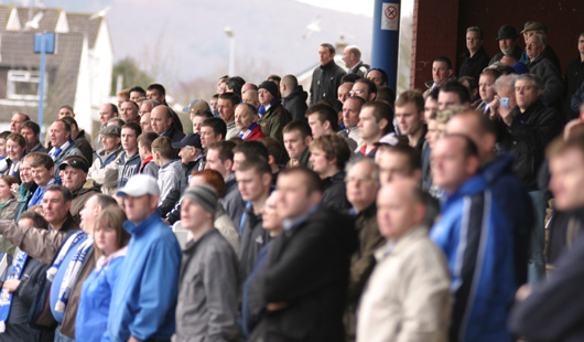 ![]() An anxious Portland Drive terrace watch the nervy 0-0 draw with Ross County unfold |