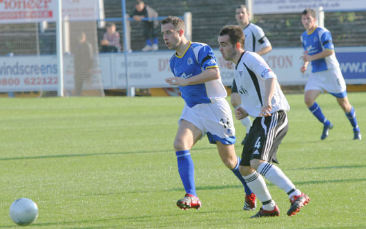 With five minutes or so left David Bingham was taken off and replaced with Paul Burns, John O'Neill moved upfront. As the crowd filtered away Queens didn't give up. Brian Gilmour, again the man with the creative streak, found himself in the penalty area, as he shaped for a shot a defender toppled the young midfielder and a penalty was awarded. A misunderstanding between Dobbie and Gilmour would be the kindest way to describe the disagreement over who would be taking the penalty, as it turned out it was Dobbie who was instructed to be allowed to take it and his effort was well saved by Paul Gallacher in the visitors goal. |