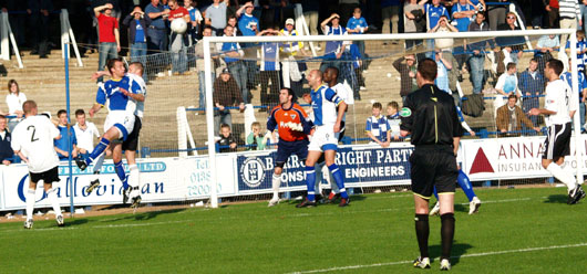![]() Aitken's header skims the bar - Photo from Sandy Robertson |