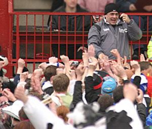 No matter what happens on Saturday, Ian McCall deserves a lot of credit at what he's already achieved and very few at Palmerston can disagree with that. Bill Goldie ![]() The fans salute Ian for a job well done |
