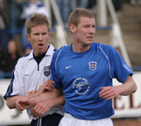 It was John Connolly who brought Sean to Palmerston from Dundee United in March, 2002, for a 'bargain price' of £10,000 and he was to net many important goals for us. That first season he helped Queens win the Second Division Championship and scored one of the goals in the crucial match at Forfar which clinched the title. The following season he was plagued by injury but returned just in time to come on as a sub for the Challenge Cup triumph against Brechin at Broadwood. Added Sean, "That was an amazing six months which I'll never forget, but it's equally important now for us to remain in the First Division. It's in our own hands but we're all confident we can do it. I owe a lot to John Connolly for bringing me to Queen of the South in the first place and I spent over two happy years at Palmerston. I left to go to Morecambe for two reasons--firstly, for the chance of full-time football and secondly, it was much nearer my home near Wolverhampton. Unfortunately I had a bad time with injuries and never got a real chance to prove myself, but as I've already said, my knee's fine now. Ian McCall took a gamble bringing me back so I'd love to re-pay the faith he had in me". How do you compare Ian McCall to John Connolly? we asked. "They're both good managers" was his reply. "But totally different in their techniques. However, both have proved to be successful in football and that's what matters most. I'm really glad to be back with Queens again and there's not been an awful lot of changes to the squad since I left. When I was here the last time Alex Burke was my striking partner up front but on Saturday I was alongside Graham Weir when I came on. Both were small in stature but good players. 'Burky' was deadly inside the six yard box and so good when he was 'one-to-one' with the keeper while 'Weiry' is more aggressive and full of running. We've also got Andy Thomson who is very experienced and has an excellent 'football brain'. I thought I'd scored myself on Saturday with that header, but 'Weiry' got a toe to it to help it over the line. But I wasn't too bothered as long as it ended up in the net. |