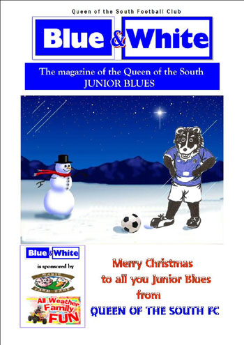 Over the next few days the second edition of ‘Blue & White’ will be dropping through hundreds of Junior Blues letterboxes. The Christmas edition sees Dougie the Doonhamer taking centre stage on the front cover. Inside there are several competitions, including Spot the Ball & Spot the Difference as well as an Xmas quiz and a ‘Design a Strip’ for younger JB’s. Created and Published on behalf of Queens by the Supporters Trust, Blue & White also contains Dougie’s Mailbox, a profile on ‘Jonjo’ O’Neil and a Gretna match preview. We would like to thank those supporters who have contributed financially to cover the printing costs, and Eric Moffat for organising despatch to all the JB’s.