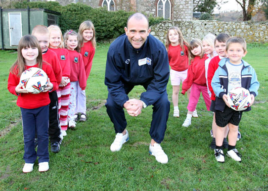 The Dumfries and Galloway Council's 'Active Schools Programme' kicked-off recently and Jim Thomson was on hand at New Abbey school to coach the youngsters there. Our picture shows Jim with the youngsters who were all eager to learn from the club captain.