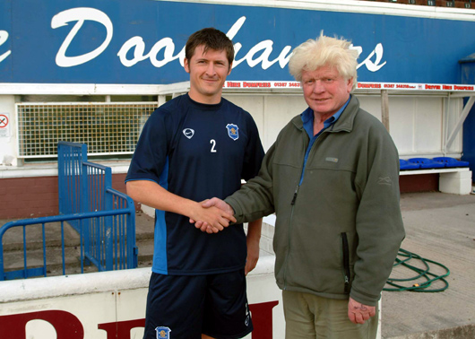 "I've played at Palmerston quite a few times for both Falkirk and Ayr United, and looking at the park tonight it looks as good as ever. I've signed a two year contract and I'm raring to go, but having been 'full-time' for so long I'll maybe have some spare time on my hands now. However, I'm moving into a new house in Barrhead shortly, so that will keep me busy". Although Neil's family hail from Liverpool, he himself was born in Paisley. For six years he was with Ayr United then spent a season at Dumbarton before signing for Falkirk. He was three years there and made 48 first team appearances. |