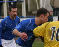 Our defence, which in early season was leaking goals like a sieve, is now solid and commanding and one of the reasons is Stuart Lovell, now playing in an unaccustomed 'sweeper' role. ![]() An eye on defence |