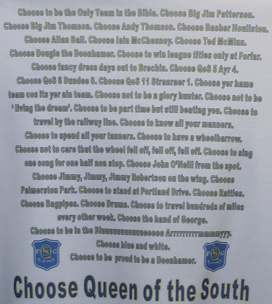 The new Queens T Shirt was selling well yesterday at the Club Shop, the white round neck has the Queen's crest printed on the front and the 'Choose' speech (pictured below) printed on the back. They are available at £12.50 each. ![]() There were also a couple of other new items available yesterday, a new mug - £6 and a new ruler - £2, both pictured below. ![]() |