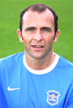 Who's the man with the mask? No prizes for guessing--yes, it's Graham Weir! 'Weiro' tried out his new protective face mask for the first time in today's 'closed doors' friendly against Annan Athletic when he came on as sub and deemed it a big success. However, he admits he's been getting 'pelters' from his team mates and added, "They've been calling me Phantom of the Opera, Zorro, Edgar Davids the Dutch internationalist and all sorts. I've even been likened to Dennis Taylor the snooker player". Graham has just bought a new house in his home town of Harthill and is hoping to move in shortly with his girlfriend, Lesley. Joked 'Weiro', "Lesley says it's a big improvement and I look better with the mask on than off. I hope she's just 'winding me up'. But I've got to agree myself it's better than my face looked when I first got the injury. It was an awful mess then.