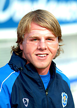 "I believe 'Gazza' had a mask made when he suffered a similar injury so, if it's good enough for him then it's good enough for me. If it helps me get back playing sooner then I'll be only too glad to take all the taunts in the dressing room. You never know it might bring me luck!". ![]() The masked man Pic. Angus McDougal, Photo, Dfs. 07 850 790 251 |