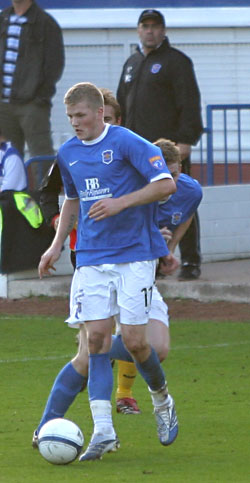 Although there were plaudits all round on Saturday, one player who deserves a special mention is Warren Moon who made his first team debut. Warren was naturally thrilled to get on from the start and confessed, "The wet pitch and heavy going made it very tiring on the legs and I didn't complain too much when the manager pulled me off after 75 minutes. 'Swifty' came on as a sub and it was a good move for he can run all day. The fans were brilliant and I could hear them from the stand and from up the side urging me on and that kept me going. I'd say my performance was satisfying rather than startling, however it was a great game and a super result. Up to now I've only featured in Reserve games and training matches but now I've got the taste of first team football I love it and I'd like to think that I've done enough to keep my spot in the team".