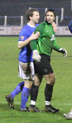 On the Saturday Queens produced a battling performance to stay in the Scottish Cup despite a tricky tie at Dens Park. Derek Lyle's diving header gave the home side a late first half lead but Sean O'Connor scored a glorious volley in first half injury time to level things up and despite several chances at either end that's how it stayed to set up a Palmerston replay. Unfortunately, with Sky TV money set to roll in for live coverage of the replay, Aberdeen's last minute equaliser in their midweek tie with Hibernian snatched it away again. Not surprisingly with an all -SPL tie available to pick up we were out in the cold again. Before the next weekend it emerged that Stephen Swift had asked away from Queens for personal reasons whilst Warren Moon had signed an extension of his contract through to the end of the season. Lewis Sloan meanwhile had his loan move to Annan delayed a week to allow him to sit on the bench at Dens and fulfil the u21 rules but eventually completed it this week. The weekend's game with Clyde though fell victim to the weather. On the Monday McCall confirmed to the website that he had turned down an opportunity to sign Derek Townsley from Gretna and that Colin Scott had been booked for a knee operation but would play against Dundee in the cup replay before having it. Unfortunately the best laid plans of mice and men don't always work out that way and Scott pulled out of the Dundee game in warm up after aggravating the injury. He never played for the club again and his swansong proved to be that first game at Dens, which he limped through heroically. Sometimes though football throws up the unlikeliest of heroes and with no-one else left to turn to McCall was forced to put his faith in the man he'd told he could leave the club. Barry John Corr was now the only senior goalkeeper at the club and ran out to face Dundee on ten minutes notice and with a point to prove. Boy did he prove it and what a game it turned out to be. |