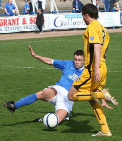 To no-one's great surprise then, the team with the greater need for the points ended up getting them. Such is the way so often in games at the back end of a football season and quite possibly it would have happened regardless of what team had been sent out. In front of a massive 1,000 fans from Airdrie the visitors struck twice in the first half through Stuart Taylor and our old adversary Ian Harty to put the match more or less beyond doubt. Midway through the second period Paul Lovering's deflected free kick confirmed the result and for good measure Jim Lauchlan, only on as a half time substitute, was sent off for an elbow on Gary Twigg. With Jim Thomson already suspended for the start of next season that will mean beginning the season with neither of the present first choice pairing at the back available. For good measure, John O'Neill had already been ruled out of the start of next season by his last minute booking at Perth the previous week and bookings on the final day for Steve Tosh and Jamie Adams will rule them out also, though of course it's far from certain that Adams will be with us then anyway.