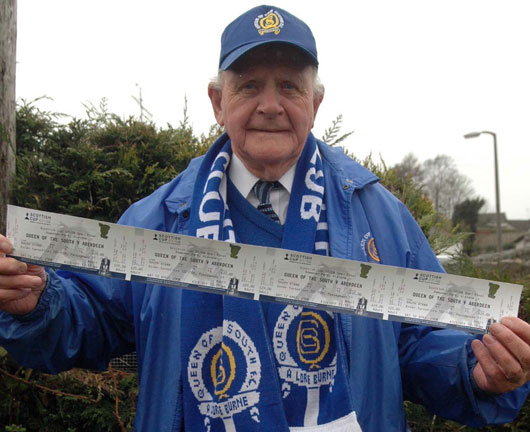 Andy Frazer from Dalbeattie has been supporting the Palmerston side for 74 years. And he was at the last Scottish Cup semi-final that Queens got to the semi-final 58 years ago. for Queens. The sprightly fan who was 91 years on Wednesday says a victory over Aberdeen would be the perfect birthday present and give Queens their first ever Hampden cup final. "I have been going to Palmerston since 1924 and I still never miss a home game. "I don't get to as many away games now but this is one I definitely don't want to miss. I got my tickets and my daughter and some of the family are going up," said Andy. He added: "I have my own seat in the stand at Palmerston and don't miss games unless I its an emergency." ![]() Andy with his tickets - By Bob Geddes, Solway Press Services, Dalbeattie |