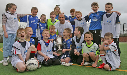 ![]() Queen of the South Captain, Jim Thomson, is pictured with the Scottish Cup and children enjoying the Easter Soccer Camp at King George V, Dumfries. Jim was delighted to lay his hands on the Scottish Cup and hopes this will be the first, but not the last time that he lifts the famous old trophy! The Scottish Football Association and Dumfries and Galloway Leisure & Sport are working together to deliver 4 day football camps from 10am in each week of the Easter holidays for 5 - 12 year olds. Each child will receive a free gift and certificate. For prices and information telephone 01387 245918/ www.dumgal.gov.uk Margaret Heuchan Photograph - Angus McDougal |