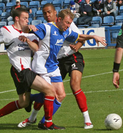 "Then the ref gives the 'nod' and you troop out onto the hallowed turf with the roars of the respective fans ringing in your ears. Some players who have been in the game for years never get the chance to savour this occasion--so I'll be saying to all our young lads, 'Enjoy it when you can'! ![]() Tosher breaks free |