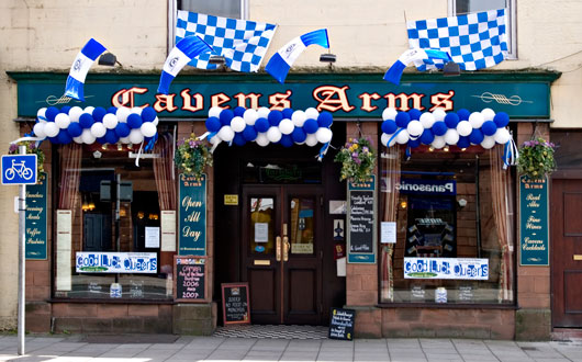 The semi-final early opening of The Caven Arms, (Jamie MacDonald's Cup Final sponsor), in Buccleuch Street was so successful that they are going to open early again on Cup Final day the 24th May, this time 8am. From this time we will be serving bacon rolls and sausage rolls along with alcohol or hot drinks. We have a special beer on called 'Palmerston Pride', available on draught or in bottles, which has been brewed at Castle Douglas by Sulwath Brewery to celebrate Queens great cup run.