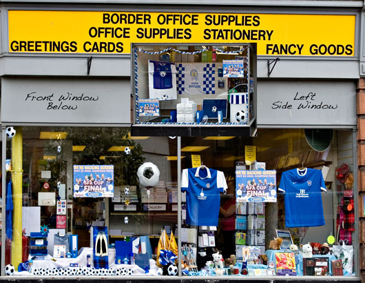The day after the night before and what a night. It's up sharp, two paracetamol and waken up Captain Chaos (John Junior), then down for breakfast. After breakfast it's down town for a look around the shops and displays in sunny Dumfries and a full 10/10 for all the shops and stores in the town centre. Everyone has some sort of display and 'Good Luck' messages to the team and it was very much appreciated. It has been great to see the whole town rally behind the football club with such style and fervour.