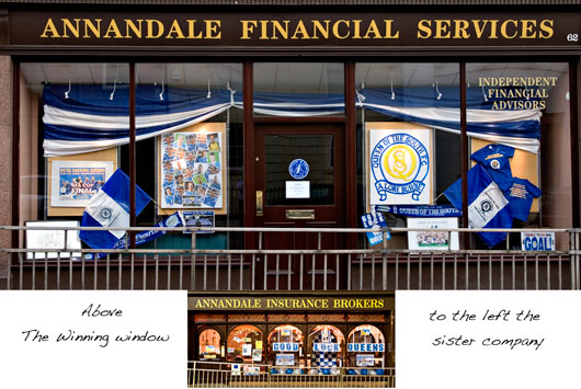 Winner of the Queen of the South 'Best Dressed Window' competition was Annandale Financial Services in Buccleuch Street, Dumfries. Runner-up was Georgetown Library. Judges were provost, Jack Groom; manager's wife, Lynn Chisholm and our commercial manageress, Margaret Heuchan. The only disappointment was that some of the well dressed windows didn't post an official entry.