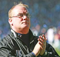 But, as we were told by Sky every country in the world watches the Scottish Cup Final. It runs into a 100 million or more. Honestly that's what he said and the Queens' support will now deservedly be mentioned with great reverence around the globe. Phenomenal that's the only word to describe our fantastic support. After the civic reception it was on to the Open-Top Bus for an amazing tour around the town centre. At every corner there just seemed to be more and more people at every turn all decked out in Queens' hats, scarfs and football tops with the flags waving. It was a magnificent site as we neared the ground. Everyone started following the bus and describing it to all my friends was: 'It was like watching the last day of the Open Championship on the 18th green with all the crowd coming up the fairway'. It was amazing to witness and I couldn't help but burst with pride at seeing all the amazing Queens' fans and as if that wasn't enough when we finally got to the ground the stadium was absolutely jam-packed and filled to the rafters. The colour and the sight was amazing and we were introduced one-by-one and when I myself was introduced and walked on to the park with everyone cheering, it made the hair on the back of my neck stand up. Then along with the rest of the staff, directors and players, not forgetting our families (in my case, Jeanne, John and Lisa) we walked around the stadium applauding our magnificent supporters for all the help they'd given us in this historic season. For Queens' first-ever Scottish Cup Final, fourth place in the league, most goals scored in a season in recent years--the list goes on and on. And a massive thank-you to everyone at the club! But what about that Eric Moffat in the office--worked like a trojan to get all the jobs done behind the scenes and the tickets sold along with Ewan and the rest of the volunteers, then goes off on holiday and misses all the best bits. Don't worry Eric we will do it all again next year just for you, so don't book you holiday until June next year. Outside Palmerston I had a chat with three top guys named 'Gogs', Colin and 'Sturie'. We chat about the season past and look forward to the forthcoming adventure in the UEFA Cup. The UEFA Cup, here we go again! Kerso's Diary straight from the San Siro or even Villa Park. Yahoo! So thanks lads for the chat you are three top blokes and I look forward to seeing you next season for our new adventures with the Doonhamers. C'Mon You Queens!!! Bill Goldie |