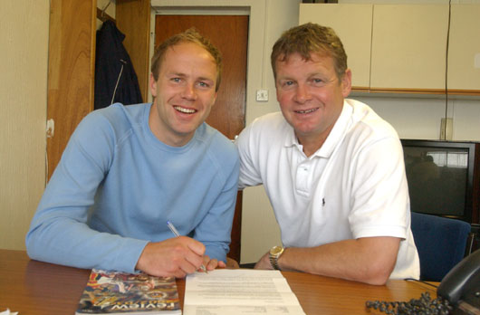Said Neil, "Queens already have a competent established squad in place and if the manager can get two or three more good players on board I feel we will be able to compete with any side in our league. Last season they put together a tremendous run of form late on so, if we could get a run like that in early season, momentum gathers, and who knows what might happen if we get big crowds behind us. But it won't be easy! "I spent a lot of time in the Premier League but I've got to say that, over the past few seasons, Division One has certainly been the more competitive and with Morton coming up and Dunfermline down, the Division will be harder than ever "Although I was only one season at Gretna I enjoyed it. It was a real family club and I have a lot of happy memories of my time there. Unfortunately I was very unlucky injury wise, something I'd never experienced before, however I still managed to play enough games to get a League Championship medal and that's something I'll always cherish. "But now I'm all set to a fresh challenge at Queen of the South and I'm really looking forward to it. Fortunately, it won't be anything like walking into a club as a stranger for I know the majority of the players at Palmerston already. Stevie Tosh and Jamie McQuilken were team-mates at Raydale, I know both Jim Thomson and Andy Aitken as we were all on the same coaching class together and during my career I've come up against most of the others. The gaffer, Gordon Chisholm and 'Snowy', our First Team coach are two more I'm well acquainted with and towards the end of last season, when I knew my contract at Gretna was coming to an end, I actually joined the Queens' lads for a couple of training sessions. So I'll have no bother whatsoever settling in! "It was flattering that quite a few other clubs made approaches but I was happy to choose Queen of the South. Of course I live in Dumfries which did have an influence on my decision. My wife, Jenna, loves it down here and she's expecting our first child soon so, naturally, I took that into consideration as well". ![]() Neil signs on today. Photograph by Robin Bryden - Dumfries & Galloway Standard Neil commenced his football career at Queen's Park before moving on to Kilmarnock, Airdrieonians, Hearts, Aberdeen and Gretna so he is an experienced campaigner having spent most of his time in the Premier League. And manager Gordon Chisholm added, "Neil has signed a two year contract and I'm delighted he chose to come to us considering so many other top clubs were after him. It's a real coup for Queen of the South. I've always said I wanted to bring in 'quality' players and Neal comes into that category with five and a half year's experience in the Premier league behind him. I've worked with him before at Airdrieonians and he's got a great attitude and temperament. The First Division will again be a tough league but I'm confident Neil will prove an asset". Bill Goldie |