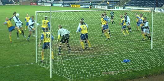 However, after withstanding all the pressure, it was the visitors who missed two gilt edged chances to clinch the points in the final three minutes. First Alex Burke was released into the penalty box by a clever McColligan pass and crossed to the back post area where Wood and Bowey were only marking each other ten yards out. They seemed to confuse each other a little before Wood tried a shot at goal only to see it beaten away by the excellent Gonzalez. A minute later Burke stole possession away from Stanic before wriggling clear and crossing for Bowey, again all alone, running into the box. This time there was no confusion and the skipper fired a shot at goal only for Gonzalez to again pull off the save and clear the danger.