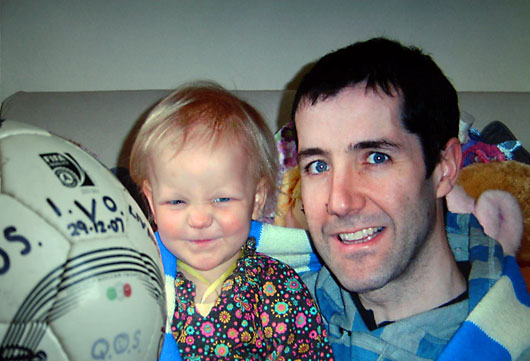 Photo - Molly Armstrong with her dad [and fellow Queens Fan] Mark at home in Lockerbie