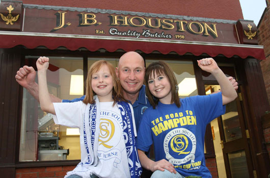 ![]() Shirt draw winner Stuart Houston of JB Houston Butchers, Dumfries celebrates winning the Queen of the South FC Shirt Draw. The largest draw with over 200 entries followed the teams successful season. Stuart is pictured with daughters Amy and Sally. Pic. Angus McDougal, Photo, Dfs. 07 850 790 251 |