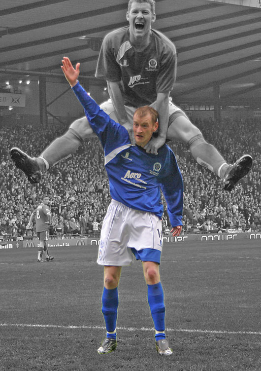 What's been your most exciting moment in your professional football career. And also the biggest match you've played in? An easy question! Without a doubt scoring that winner at Hampden against Aberdeen. Before kick-off I said to 'Dobbs' and wee Brain Gilmour that if I scored I'd do an action replay of Jean-Claude Darcheville's now famous salute to the fans. So I did! As for my biggest game--another easy one. That very same Scottish Cup semi-final. The atmosphere and the support of the all the Queens' fans made it a wonderful occasion and one I'll never forget. What's been your most embarrasing moment in football? When I was at Aberdeen I was once sent on as a first-half substitute and scored what turned out to be the winner. But I was substituted myself during the second half in what you might call a 'double substitution' and never 'lived it down'. Who do you rate the best player at Queen of the South at present? 'Dobbs'. He's a great finisher and that says it all. If you could play for any club in the world who would it be? Barcelona. I'd love the sun, the sangri and yes--the big money. An added bonus would be playing with all those big stars. What's your favourite film or video? Braveheart starring Mel Gibson. I'm very proud to be Scottish. Your favourite food and drink? Any kind of pizza. For drink--amoretta. And the favourite item in your wardrobe? An Aberdeen top signed by all the Celtic players after playing against them. It takes pride of place in my wardrobe. If you had the chance to spend a week on your own, anywhere in the world, where would it be? Ibiza--the weather, the beach and that fabulous night life is heaven. If you had to choose a famous female celebrity to have dinner with, who would it be? That sultry singer Shakira. Do you ever log-on to the official QOS Website and, if so, what do you think of it? Like 'Scal', I'm not into computers so I never see what's being said. Sorry! Next Friday our featured player is Brian Gilmour. Bill Goldie |