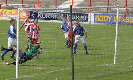 John O'Neill had a great chance to open the scoring after just three minutes when he beat the offside trap but he delayed too long with a chip and the home keeper was able to get back on his line to save. Leigh had a good first half though and on 9 minutes Steve Brockley flicked a header just wide from six yards after a left sided free kick. David McNiven was facing his old team of course and was keen to make an impression. On 19 minutes he turned and hit very close to the top left corner from all of 25 yards out.In the 35th minute Tommy English inexplicably turned and hammered the ball out for a corner from the opposite side of the park and the error was nearly very costly when the resulting set piece was headed narrowly over by Chris McDonough. That about summed up a low key first half!