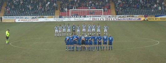 Ian McCall made two changes to the side which beat Clyde last weekend with Steve Bowey replacing Paul Burns and Gary Wood back in up front for Derek Lyle. Both Lyle and Burns took their spots on the bench but despite suggestions of it there was no place there for Sean O'Connor and more surprisingly none for Andy Thomson either, presumably injured. Instead Shaun Dillon returned to the match squad. The game was prefaced by an immaculately observed minute's silence in memory of Brian Hetherston, the former St Mirren player who died at the tragically young age of 29 last week. When it did get going it was no surprise that the home side soon seized the ascendancy. Four minutes in and Mark Corcoran cut in from the right and tried a shot back across Scott from 20 yards but failed to seriously trouble the keeper. Ten minutes later John Sutton chased a good ball down the channel but Colin Scott was quickly out from his line to save at the striker's feet. In 18 minutes St Mirren were forced to make an early change when Kevin McGowne hobbled off and was replaced by the highly rated Kirk Broadfoot who has been out for a while with a broken bone in his foot. Two minutes later Corcoran knocked the ball through Lovell's legs and made for goal again only to again be denied by Scott making a decent block and, as the home side continued to dominate, shortly after that a somewhat soft free kick was given against Bowey on the edge of the box and Adam swept it over the bar by inches. |