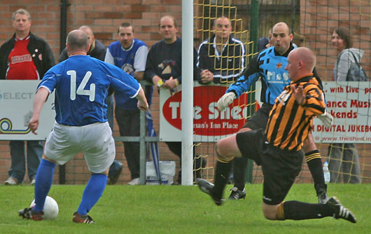 The next two goals showed that Stevie Mallan still knows the way to goal as he first collected a Warren Hawke through ball and slipped it past McColm and the second just on the stroke of half-time when Marv was let alone at the back post and crashed a cross into the roof of the net.